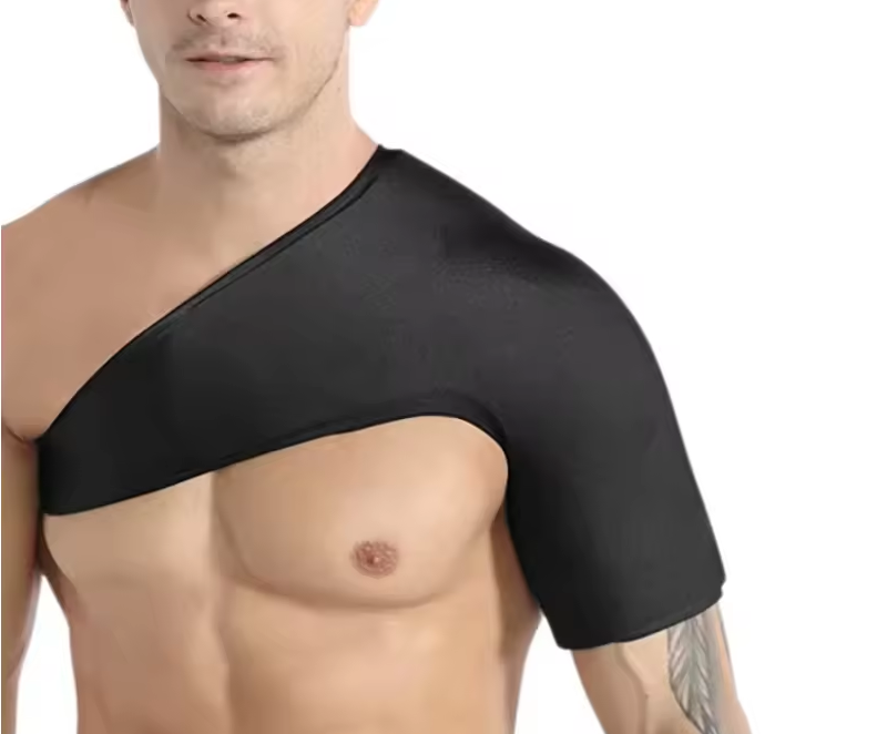 Il materiale flessibile e resistente garantisce una copertura uniforme a 360°, adattandosi comodamente alla spalla. Disponibile in diverse taglie, fornisce supporto ottimale per chi pratica sport, lavora molte ore seduto o necessita di un recupero mirato in fisioterapia.