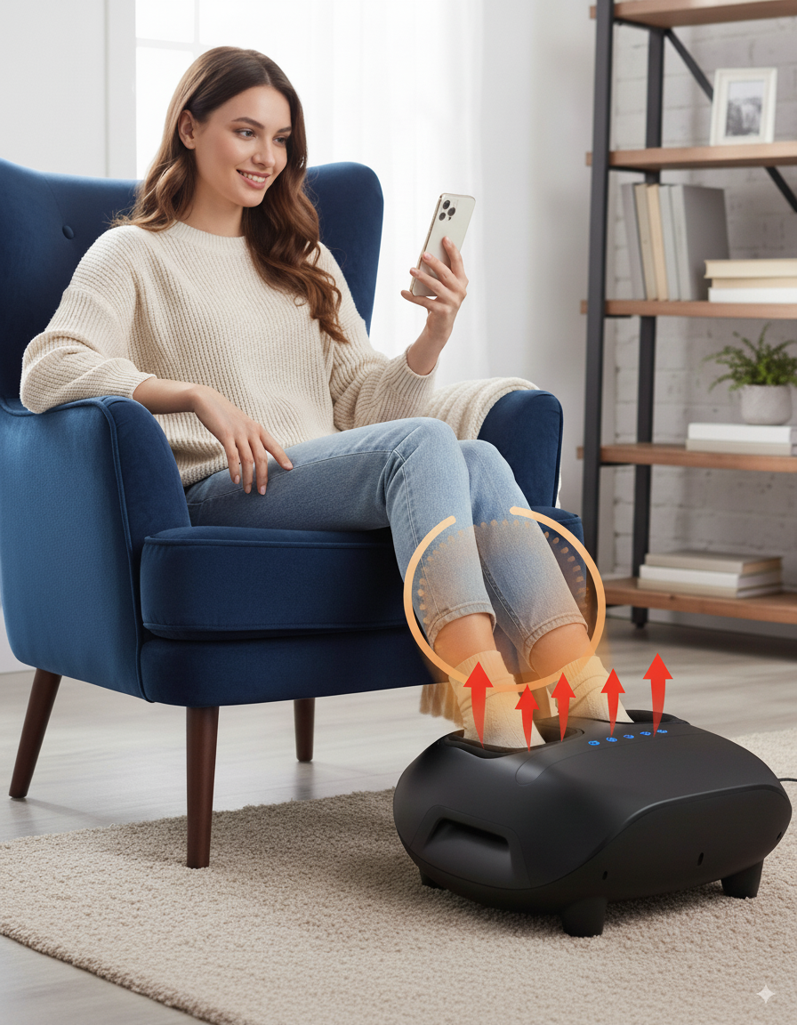 👣 Pressione che avvolge, rulli che sciolgono — un massaggio intenso e naturale che libera i piedi dalla stanchezza.