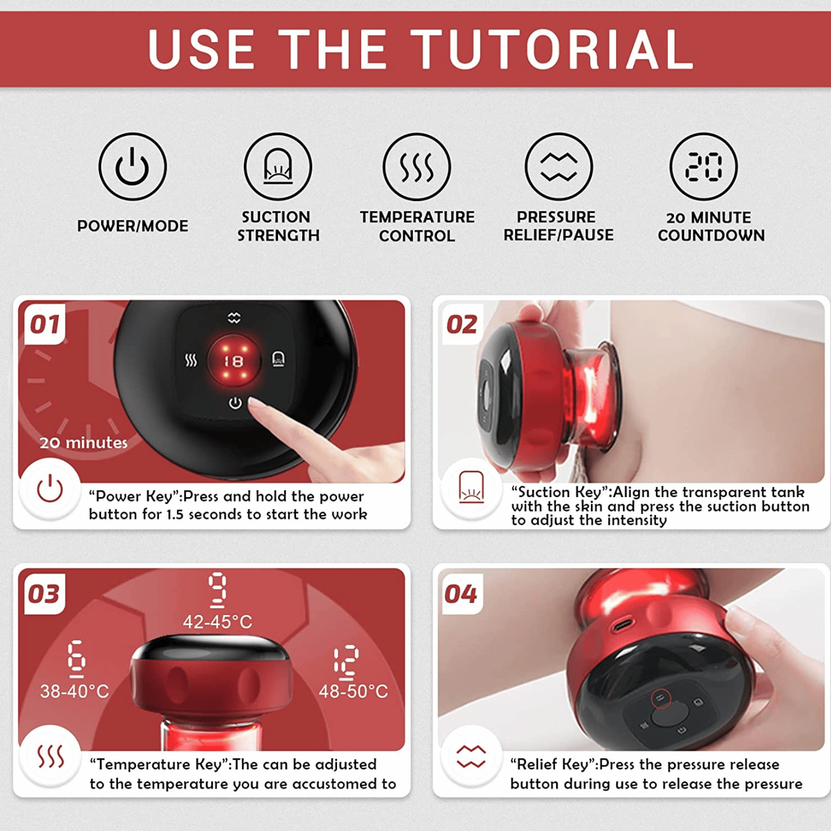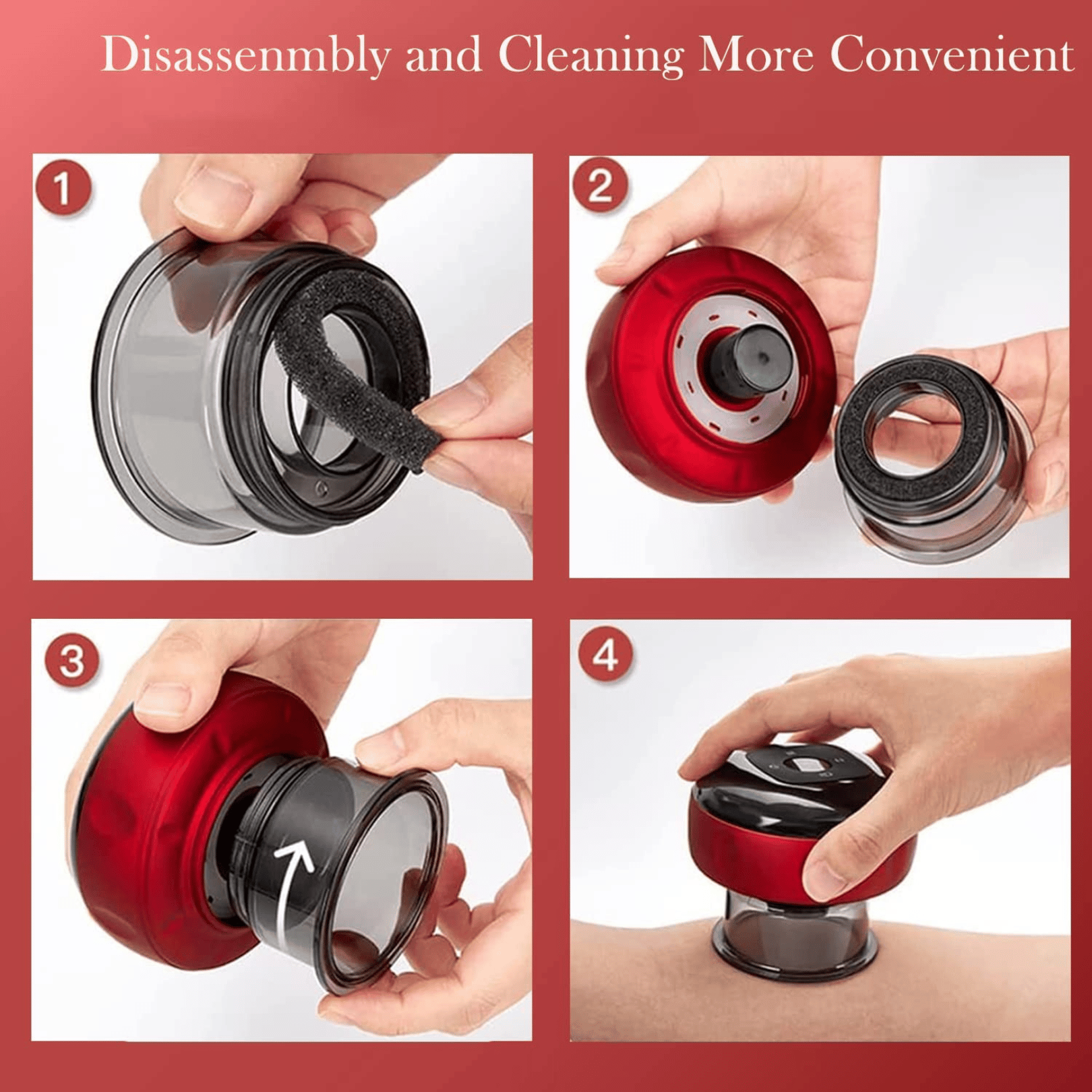 Con 12 livelli di aspirazione e temperatura (38°-50°C) puoi adattare il trattamento alle tue esigenze: dai principianti che desiderano un sollievo leggero, a chi necessita di un massaggio intenso per dolori muscolari più profondi. Il design trasparente permette di monitorare visivamente il processo di coppettazione, mentre la portabilità lo rende ideale per l’uso domestico e in viaggio.